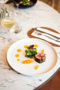 assiette-gastronomique-poisson-nori-agrumes-restaurant-table-obono-morbihan.webp